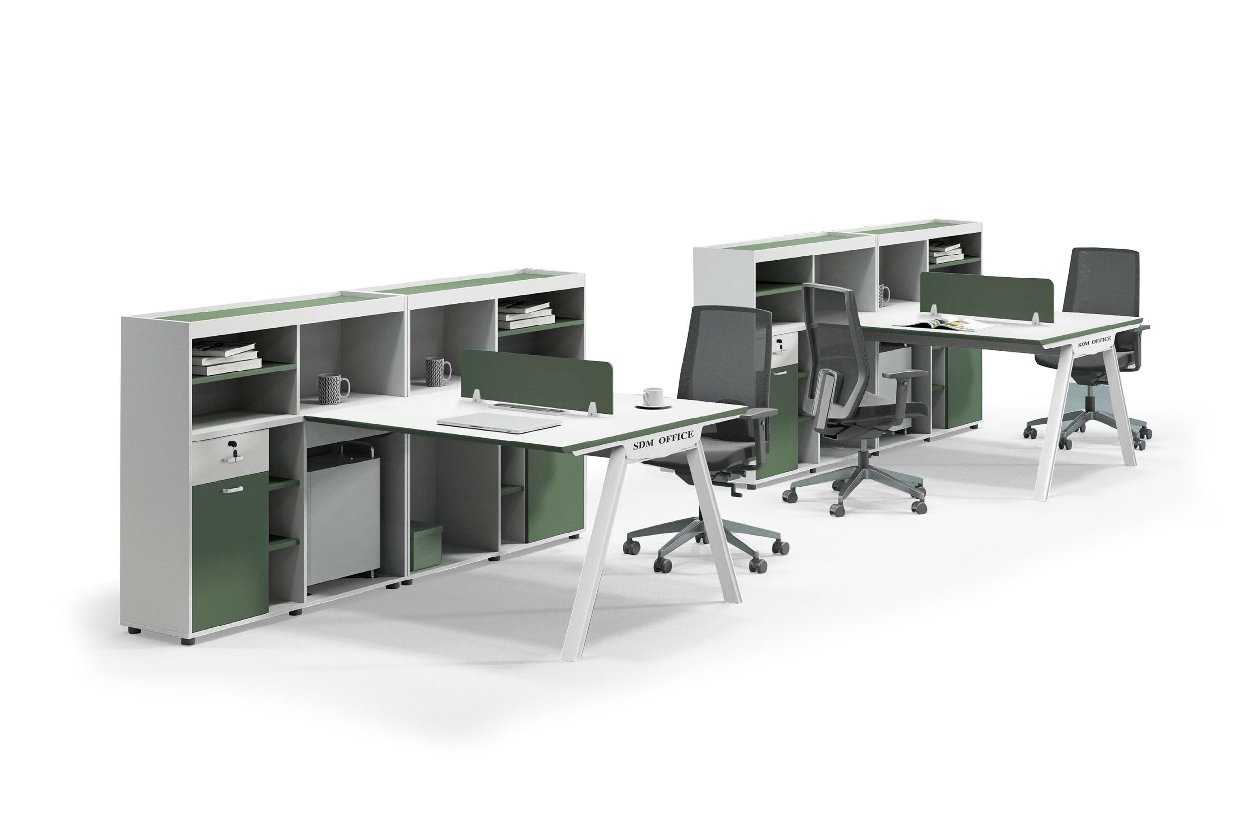 يتم تصنيع كل محطة عمل في مصنع رويا للأثاث المكتبي باستخدام خشب الـ Chipboard عالي الجودة والمغلف بمادة الميلامين المقاومة للخدش والرطوبة، مع حواف PVC أنيقة لضمان المتانة والمظهر الراقي.